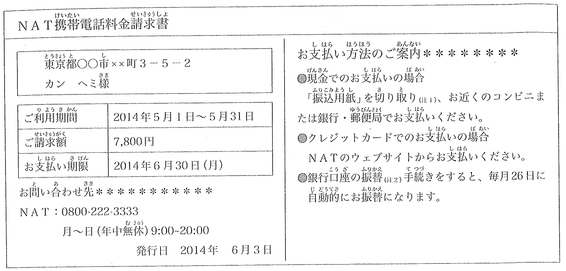 Kan nhận được tờ giấy phía bên phải. Kan đã làm tài khoản ngân hàng nhưng lại không có tài khoản của bưu điện. Kan cũng chưa có thẻ tín dụng.