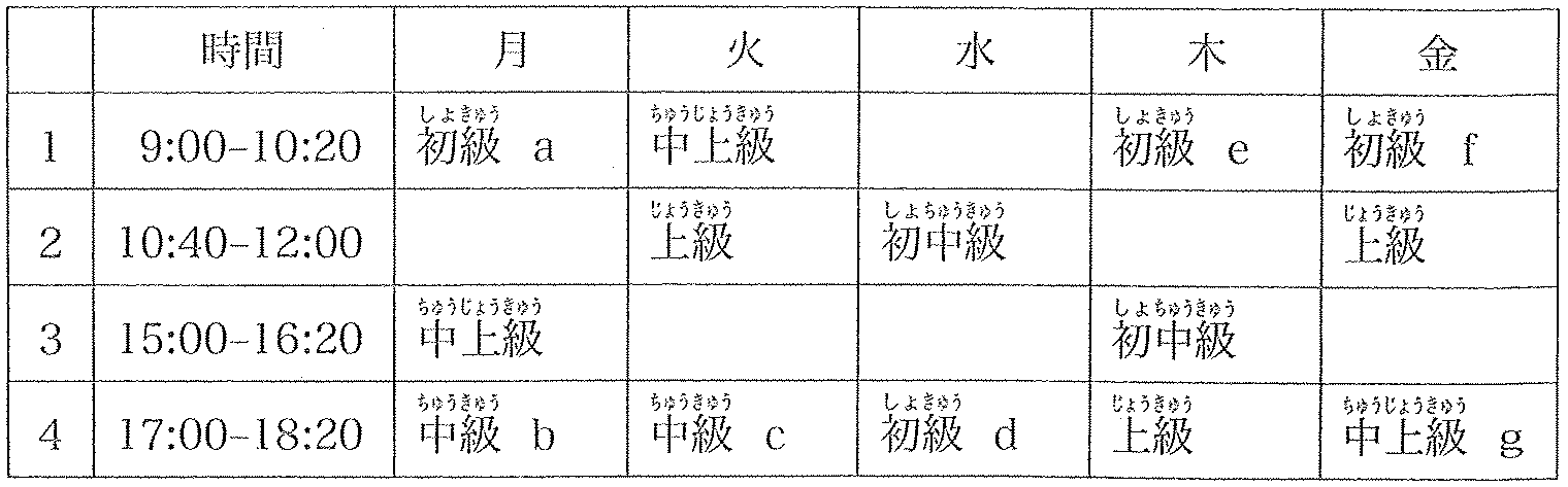 定員: 各クラス14人まで(丁寧になったらしめきり)