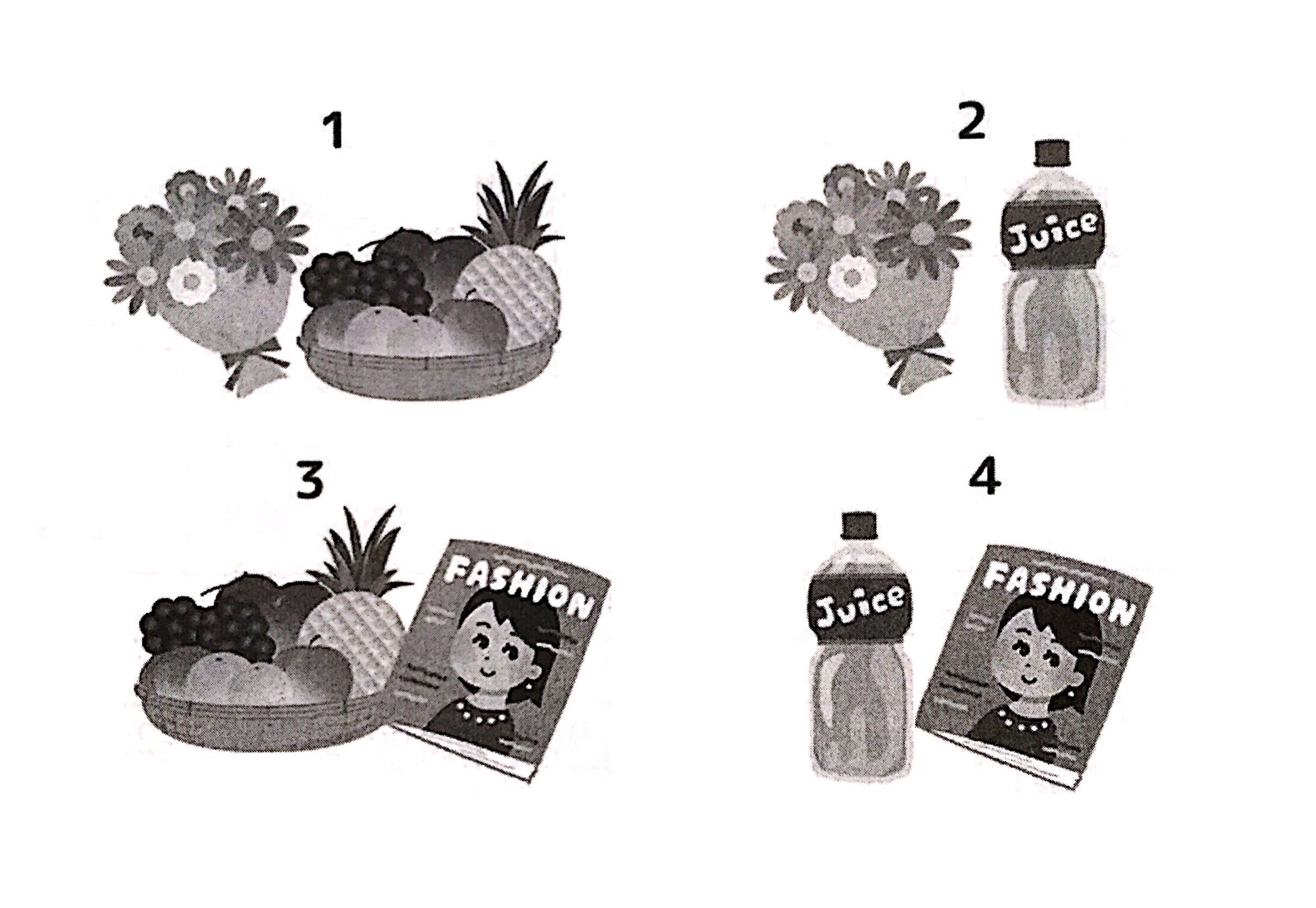 Đề thi chính thức JLPT N3 – tháng 12 năm 2011 – 聴解 Bật/Tắt PHIÊN ÂM HÁN TỰ Mã quảng cáo 1⚠️ Vui lòng bật JavaScript để xem nội dung trang này. 問題 1 問題1では、まず質問を聞いてください。それから話を聞いて、問題用紙の1から4の中から、最もよいものものを一つえらんでください。 問01: しゅくだいを出(だ)す パソコンをかたづける こくばんの字(じ)をけす CD プレイヤーを運(はこ)ぶ 教室(きょうしつ)で女(おんな)の先生(せんせい)と男(おとこ)の学生(がくせい)が話(はな)しています。男(おとこ)の学生(がくせい)はこの後(あと)すぐ何(なに)をしますか。女: それでは今日(きょう)の授業(じゅぎょう)は終(お)わります。宿題(しゅくだい)の作文(さくぶん)は来週忘(らいしゅうわす)れずに出(だ)してください。男: 先生(せんせい)、何(なに)か手伝(てつだ)いましょうか?女: ああ、どうもありがとう。私(わたし)はパソコン片付(かたづ)けるから、うーん、じゃあ、黒板(こくばん)、消(け)してくれる?男: はい、後(あと)、CDプレーヤ、先生(せんせい)の部屋(へや)に持(も)っていきましょうか?女: CDプレーヤは次(つぎ)の授業(じゅぎょう)でも使(つか)うから、そのままにしておいて、ありがとう。男(おとこ)の学生(がくせい)はこの後(あと)すぐ何(なに)をしますか。 問02: 1 2 3 4 男(おとこ)の人と女の人が話(はな)しています。男(おとこ)の人(ひと)は友達(ともだち)のお見舞(みま)いに何(なに)を持(も)っていきますか。男: 鈴木(すずき)さんが入院(にゅういん)してるって知(し)ってた?女: うん。私(わたし)、昨日(きのう)お見舞(みま)いに行(い)ってきたんだ。思(おも)ったより元気(げんき)そうだったよ!男: あっ、本当(ほんとう)、よかった。僕(ぼく)も今日(きょう)行(い)くつもりなんだけど、お見舞(みま)い行(い)って何(なに)持(も)って行(い)けばいいと思(おも)う?女: 私(わたし)は花(はな)を持(も)って行(い)ったけど、鈴木(すずき)さん、入院生活(にゅういんせいかつ)が退屈(たいくつ)だって言(い)ってたから雑誌(ざっし)か何(なに)かがいいんじゃない?男: そっか、じゃそうしよう、あと果物(くだもの)でも持(も)っていこう。女: あっ、果物(くだもの)ね、手術(しゅじゅつ)したばかりだから、まだ食(た)べられないと思(おも)うよ、飲(の)み物(もの)のほうがいいんじゃない?ジュースとか。男: あ。そうだね、そうしよう。ありがとう。男(おとこ)の人(ひと)は友達(ともだち)のお見舞(みま)いに何(なに)を持(も)っていきますか。 問03: 1 2 3 4 大学(だいがく)で男(おとこ)の学生(がくせい)と女(おんな)の学生(がくせい)が話(はな)しています。女(おんな)の学生(がくせい)はケーキをどう切(き)りますか?男: 先生(せんせい)がこのケーキ、皆(みな)で食(た)べようって。女: えっ?本当(ほんとう)?じゃ、私(わたし)が切(き)ろうか!ええと、何人(なんにん)いる?男: 僕(ぼく)たち四人(よんにん)と先生(せんせい)女: ああ、どうやって切(き)ろうか男: まず四(よっ)つに分(わ)けて、その中(なか)の一(ひと)つを半分(はんぶん)にすればいい。女: えっ、でも、それじゃ、2人分(ふたりぶん)小(ちい)さくない?男: 僕(ぼく)と佐藤(さとう)さんは甘(あま)いものがそんなに好(す)きじゃないから、それぐらいがちょうどいいよ。女: あっ、そう、じゃ、そうさせてもらうね。女の学生はケーキをどう切りますか? 問04: しりょうをコピーする へやをよやくする エアコンをつける お茶(ちゃ)をじゅんびする 会社(かいしゃ)で男(おとこ)の人と女の人が話(はな)しています。女(おんな)の人(ひと)はこの後何(あとなに)をしなければなりませんか。男: 2時(じ)からの会議(かいぎ)、準備(じゅんび)はできた?女: はい、こちら、頼(たの)まれていた資料(しりょう)のコピーです。男: あ、ありがとう。会議室(かいぎしつ)は何時(なんじ)まで予約(よやく)してくれた?女: 一時半(いちじはん)から四時(よじ)まで予約(よやく)いたしました。男: うん、そのぐらいでいいだろう。それと、始(はじ)まる前(まえ)に、エアコンを付(つ)けておいて、今日暑(きょうあつ)いから。女: はい、会議(かいぎ)の時(とき)はお茶(ちゃ)を出(だ)したほうがいいでしょうか。男: うん、お茶(ちゃ)の準備(じゅんび)は田中(たなか)さんにお願(ねが)いしよう、僕(ぼく)から頼(たの)んでおくよ。女(おんな)の人(ひと)はこの後(あと)何(なに)をしなければなりませんか。 問05: ア ウ ア エ イ ウ イ エ 男(おとこ)の人(ひと)と女(おんな)の人(ひと)が話(はな)しています。男(おとこ)の人(ひと)は箱(はこ)に何(なに)を入(い)れますか。男: 引(ひ)っ越(こ)しの準備(じゅんび)、手伝(てつだ)いに来(き)たよ。女: ありがとう。男: ええと、何(なに)をしようか?女: それじゃ、そこの本(ほん)を箱(はこ)に詰(つ)めてくれる?男: 分(わ)かった、CDも入(い)れる?女: それは友達(ともだち)にあげることになってるから、そのままにしておいて男: うん女: あっ!後(あと)こっちの鍋(なべ)とかフライパン、もう使(つか)わないから箱(はこ)に入(い)れちゃって。でも、お皿(さら)は
