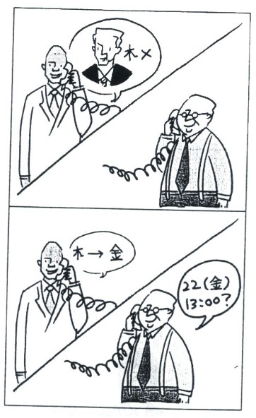 そうですか。では、22日金曜日の1じでいいですか。