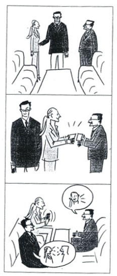 はじめまして。モロゾバと申します。(名刺を渡す) Hân hạnh gặp anh. Tôi là Morozoba.(Trao danh thiếp) |