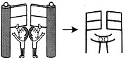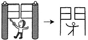 人が門を閉めます Một người sẽ đóng cổng (門). |