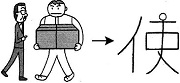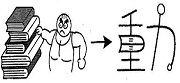 力を入れて思い本を動かします Dùng sức lực (力) dịch chuyển quyển sách nặng(重). |