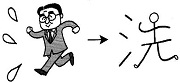 先生が手を洗いに行きます Thầy giáo đi (先生)rửa tay. |