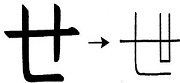 「せかい」の「せ」はこの漢字から作られました Chữ 「せ」 trong từ 「せかい」 (thế giới) được tạo thành từ chữ Hán này. |