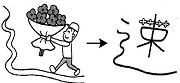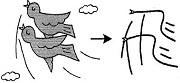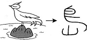 Con chim (鳥)đang nghỉ trên ngọn núi (山)ở đảo.