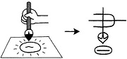 ふでをもって、「」をかきます