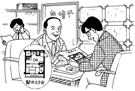 うーん、・・・・・。ちょっと 駅から 遠いですね。 Ừm,…Có hơi xa nhà ga nhỉ. |