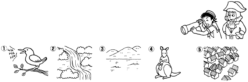 Ngày xưa, người đã đến Úc lần đầu tiên đã nhìn thấy điều gì và đã nghe điều gì.Hãy chọn hình thích hợp theo nội dung được đề cập trong bài hội thoại.