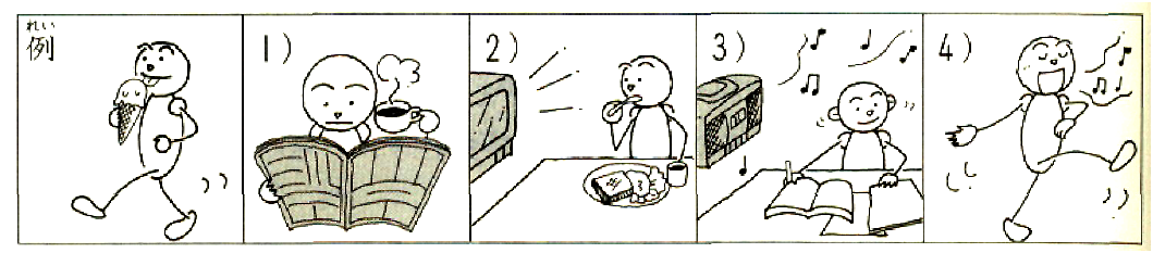 例:日曜日は いつも 9時ごろまで (寝て います)が、きょうは 用事が ありましたから、6時に (起きました)。