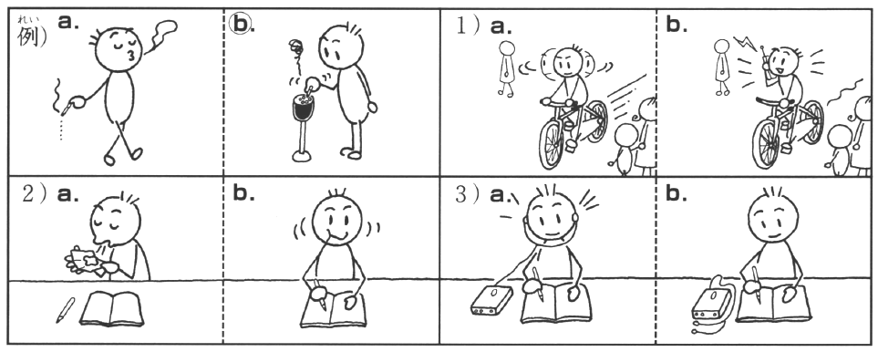 例)朝ごはんを 食べますか。…… a.毎日 (b.)時々 c.全然