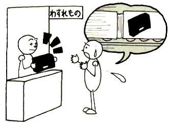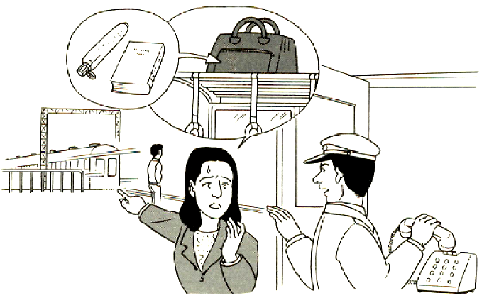 すみません。今の 電車に 忘れ物を して しまったんですが・・・・・。 Xin lỗi, tôi đã để quên đồ trên chuyến xe điện mới nãy mất rồi. |