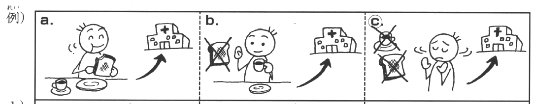 3. シュミットさんは 病院へ 行きました。どうしたら いいですか。
