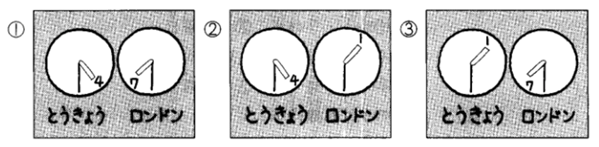 (おとこ):  ロンドンは 何時(なんじ)ですか。