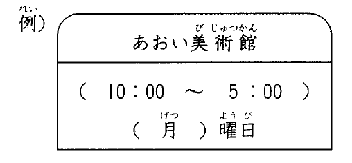 2.   何時(なんじ)から 何時(なんじ)までですか。(やす)みは 何曜日(なんようび)ですか。