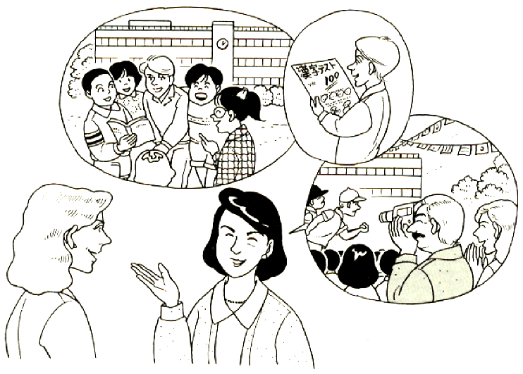 ところで、もうすぐ 運動会ですが、お父さんも いらっしゃいますか。 Nhân tiện đây, sắp sửa đến đại hội thể thao rồi, không biết bố cháu có đến dự không? |