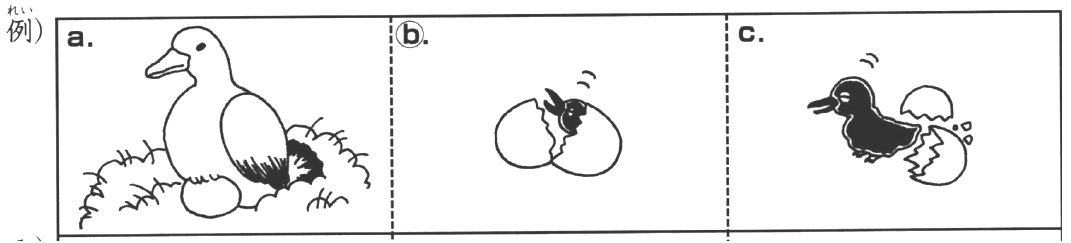皆さん、今から鳥の ビデオを 見ます。 Mọi người, bây giờ sẽ xem đoạn phim của con chim. これは 日本の 南の 島に 住んでいる鳥で、 Đây là con chim quý hiếm đang sinh sống ở hòn đảo phía nam Nhật Bản,. 「アホウドリ」という名前です。 Tên là [Ahoudory]. 巣の 中に 卵が 1つ見えるでしょう? Có nhìn thấy 1 quả trứng bên trong tổ chim nhỉ? この 鳥は 1回に 1つしか卵を 産みません。 Con chim này chỉ sinh 1 trứng cho 1 lần. 今、卵から赤ちゃんが 生まれるところです。 Hiện giờ, là lúc từ quả trứng nở ra con nhỏ. ほら、ちょっと頭が 見えますね。 Nhìn kìa, hơi nhìn thấy cái đầu ló ra nhỉ. さあ、これから どうなるでしょうか。 Vậy thì, từ giờ sẽ là như thế nào nhỉ? |