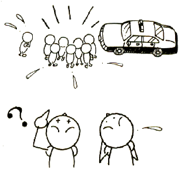 そうですね。(2)パトカーが 来て いますね。 Ừ nhỉ. Xe cảnh sát giao thông đang tới kìa. |