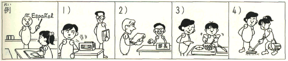 例: 娘は スペイン語を 習いました・わたし