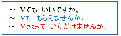 Xin phép được làm một việc gì đó một cách lịch sự. Mẫu câu trong khung được xếp theo mức độ lịch sự tăng dần. |