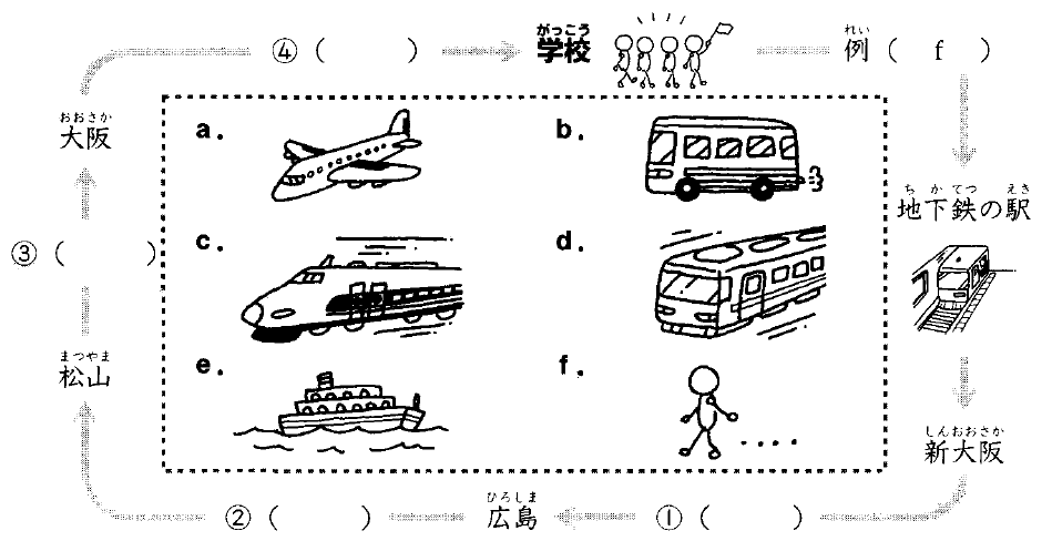 (Số ①、②、③、④ trong bài hội thoại tương ứng với phương tiện nào)