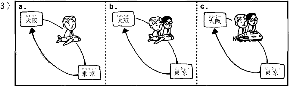 新大阪から 新幹線で 行きますか。 Chúng em sẽ đi từ Shinosaka bằng tàu Shinkansen phải không? |