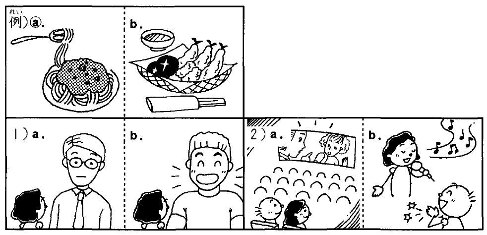 いいえ、わたしは…… Không, Tôi thì ……. 元気な人が 好きです。 Thích người khỏe mạnh. |