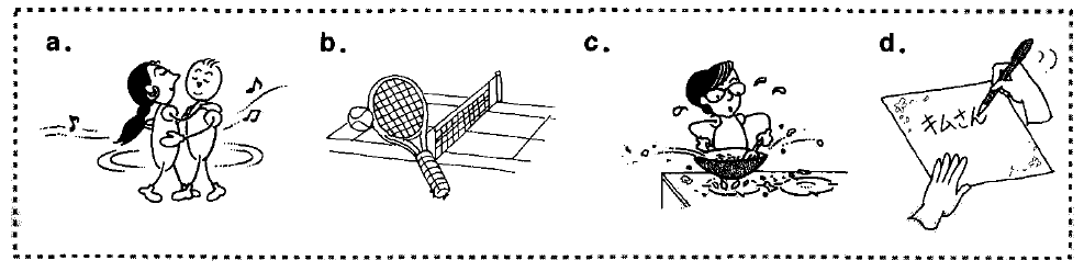 Hướng dẫn: đoạn hội thoại này tương ứng với hình b, chơi Tennis. Aiko chơi rất giỏi Tennis => b とても a