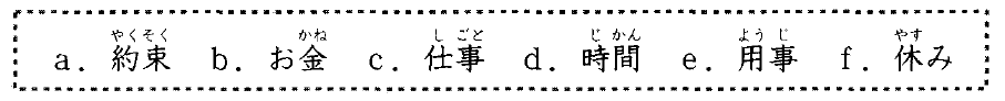 すみません。 Xin lỗi. 友達と 約束が ありますから……。 Vì tôi có hẹn với bạn ……. |