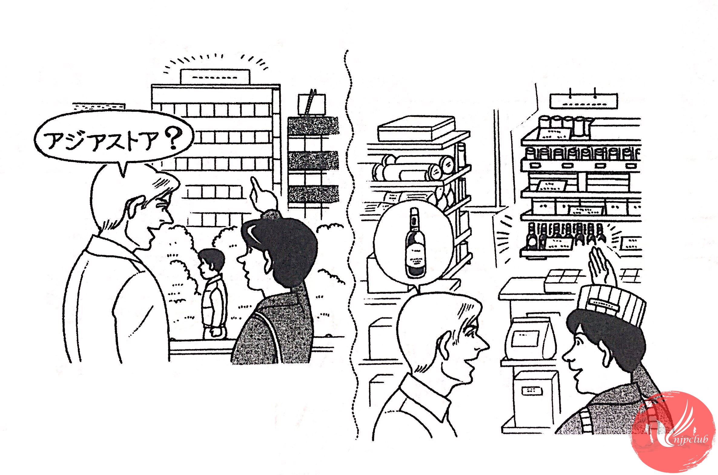 あちらに タイ料理(りょうり)の コーナーが あります。ナンプラーは いちばん (した)です。
