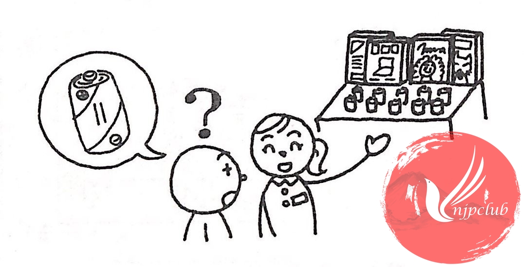 電池(でんち)ですか。 雑誌(ざっし)の (まえ)に あります。