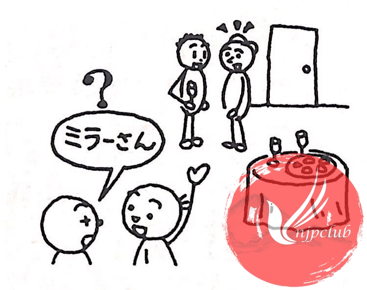 ええ。あそこに いますよ。ドアの (ちか)です。