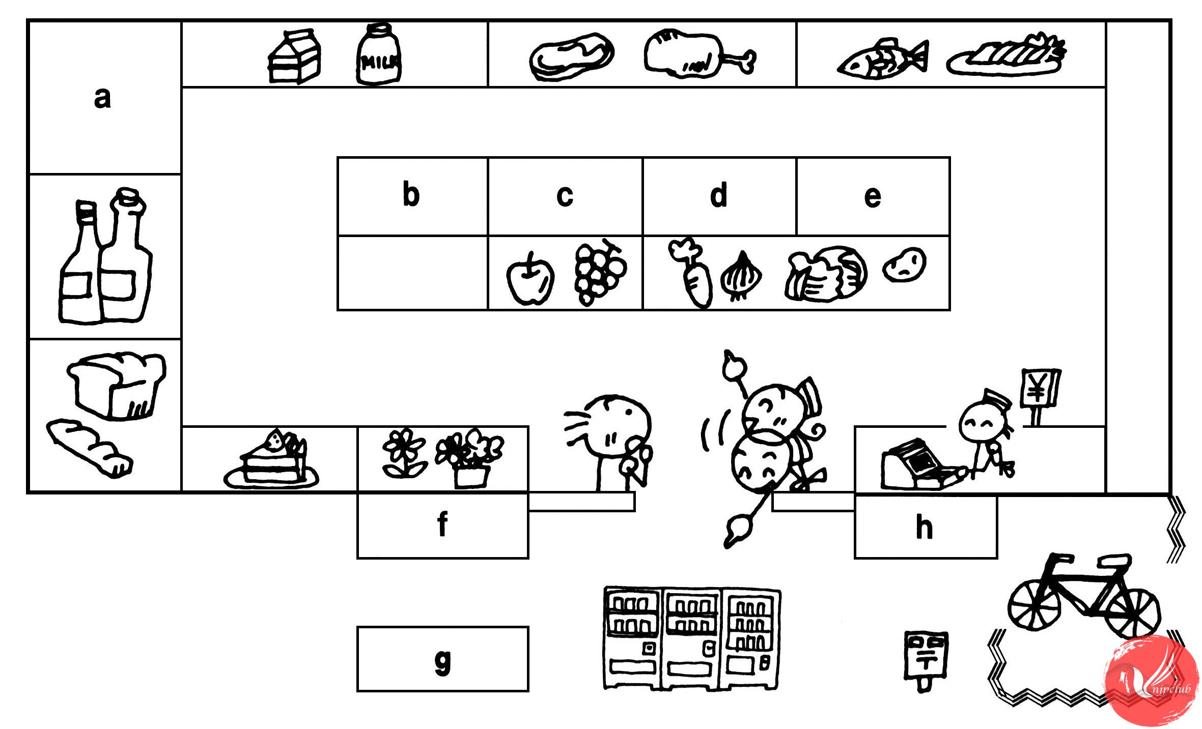ほら、スーパーと 本屋( ほんや ) の 間( あいだ ) におもしろい店( みせ ) が ありますね。