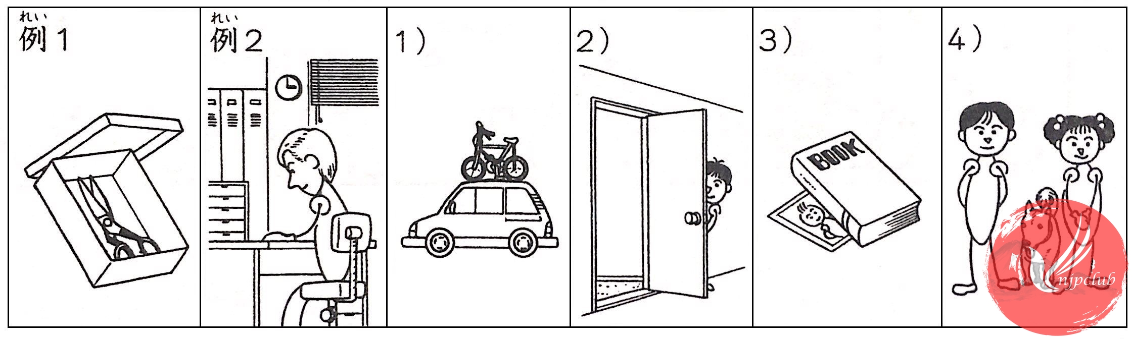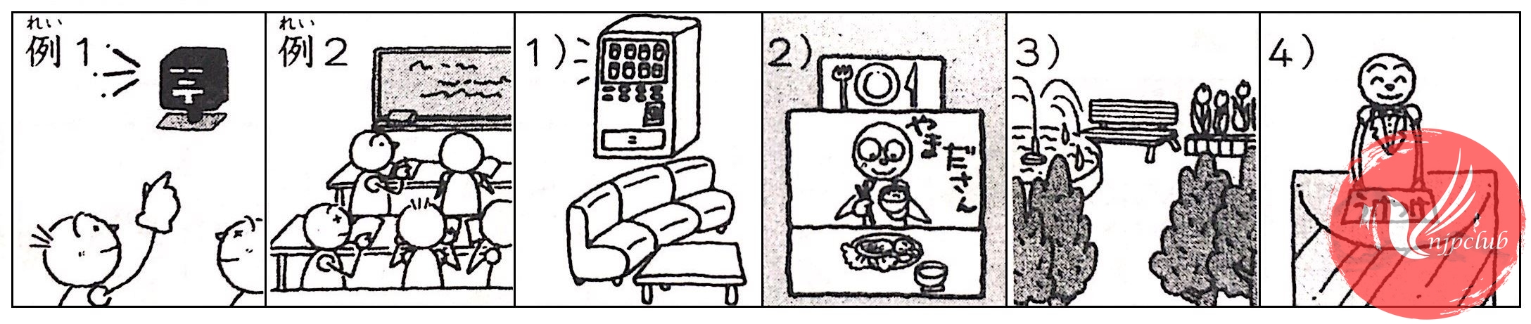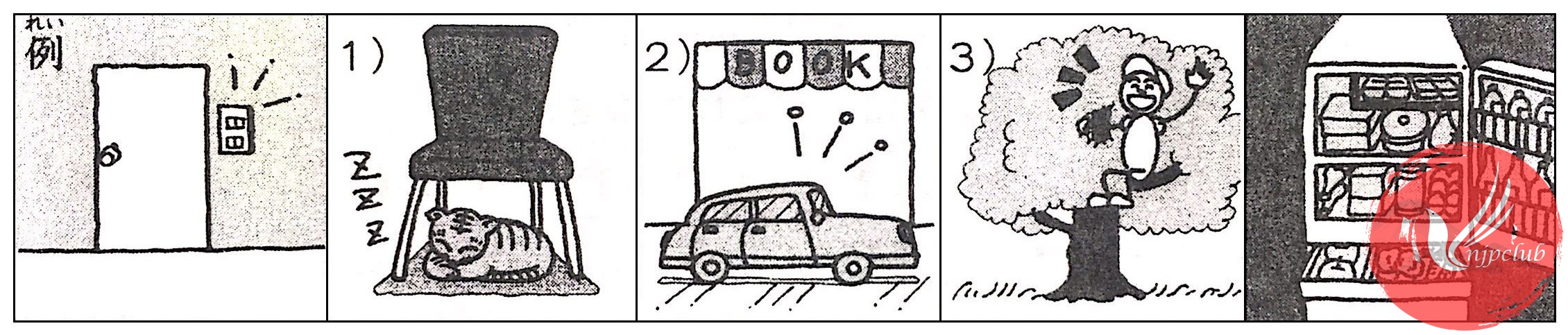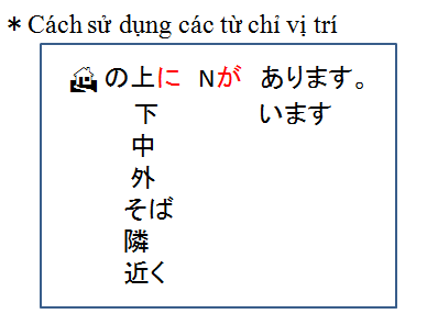 Trước に là các từ vựng chỉ nơi chốn, vị trí. Dùng trợ từ が ở sau danh từ chỉ người hoặc vật. Lưu ý: Sau nghi vấn từ không dùng trợ từ は: ✖なには、✖だれは