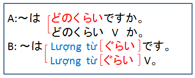 Dùng để hỏi về thời lượng, số lượng. Có thể dùng どのくらい hoặc どのぐらい để hỏi. |