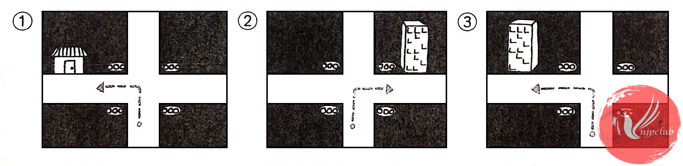 あの 信号を 右へ 曲がって ください。 Hãy quẹo phải ở chỗ đèn tín hiệu kia. |