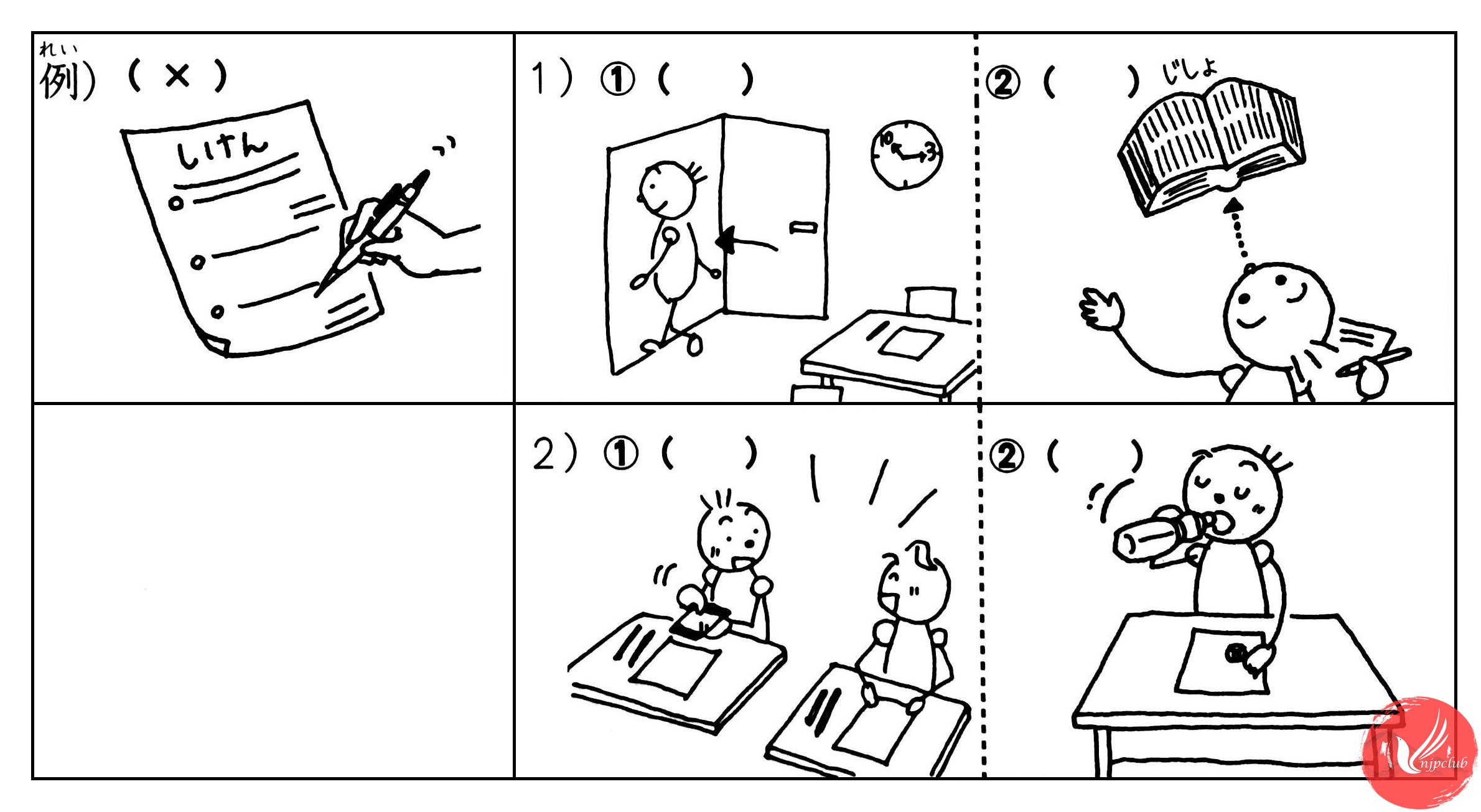 2. 今から 試験です。学生は しても いいですか、しては いけませんか。いいです……O いけません……X