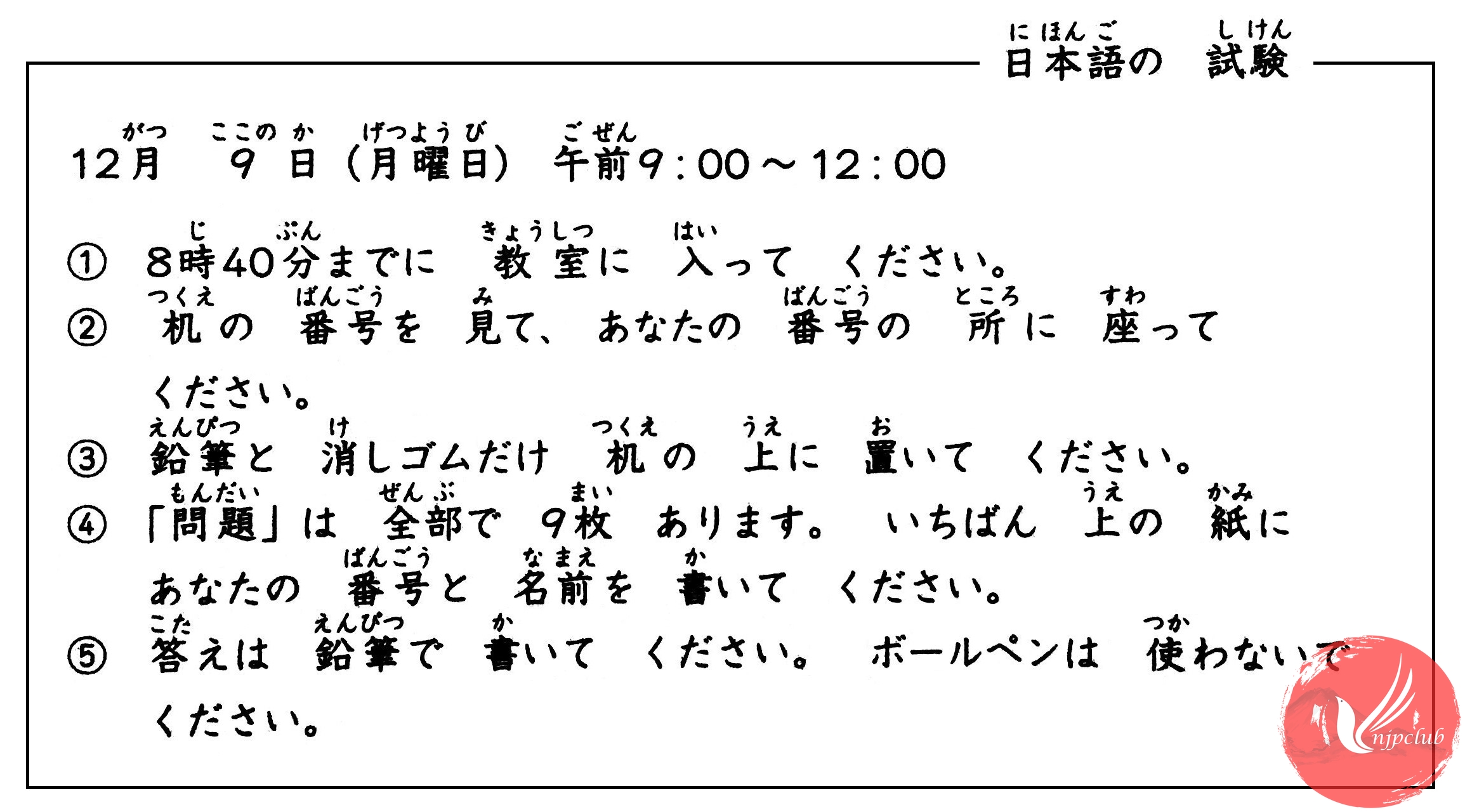 4)(____) 「問題」の 紙に あなたの 番号は 書かなくても いいです。