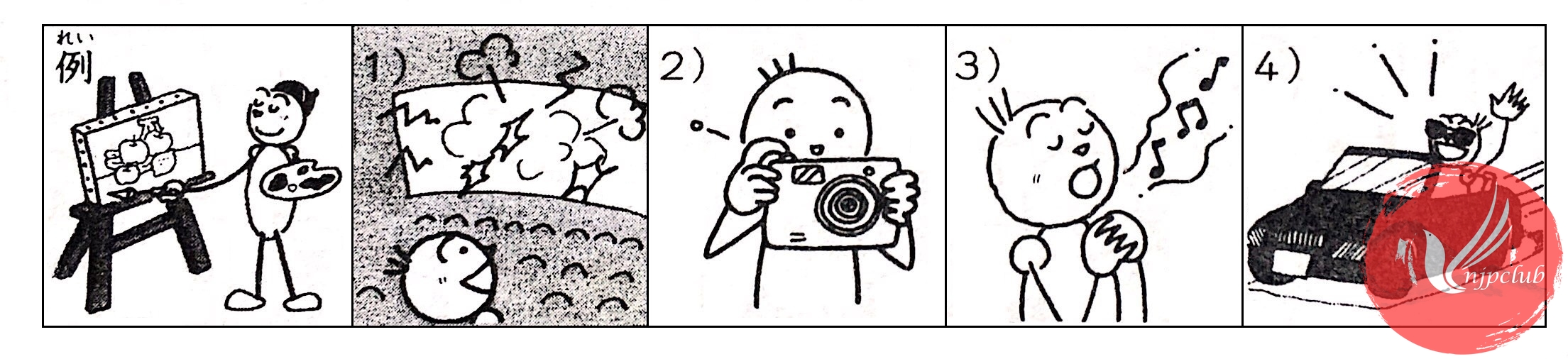 3) 図書館で 辞書を 借ります(いいえ) ⇒