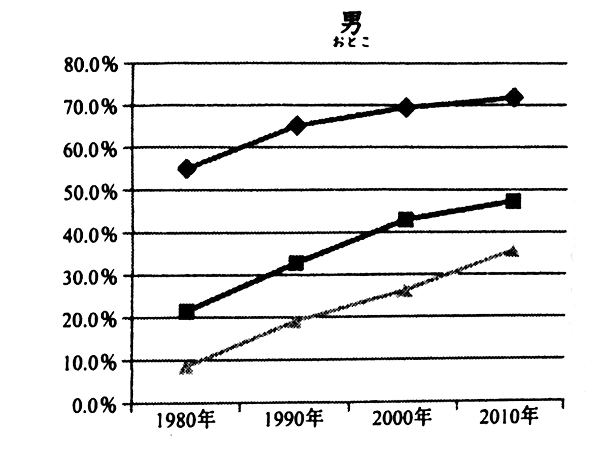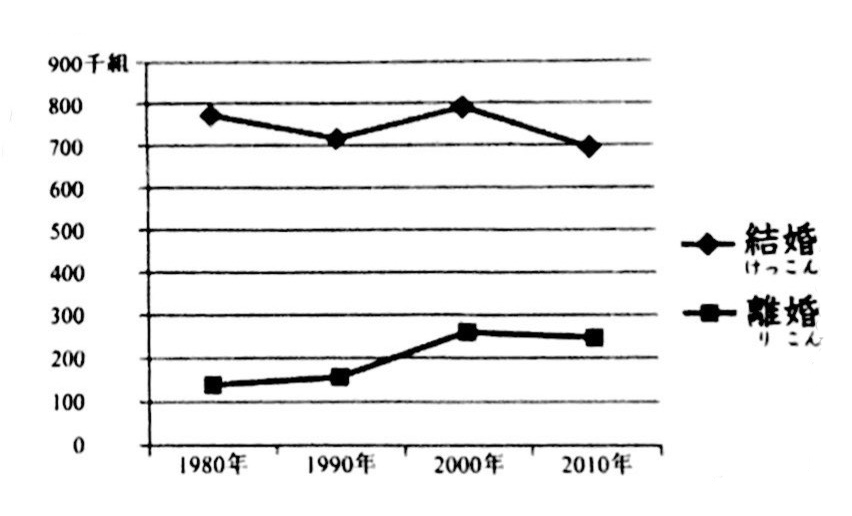 ◎始めて 会ってから、結婚まで ・どこで どうやって 会いましたか。 会社仕事...29.3% 友達・兄弟・姉妹の 紹介...29.7% 学校...11.9% ・何歳で 結婚しましたか。 男の人:29.8歳 女の人:28.5歳 ・結婚まで 何年 かかりましたか。 4.26年◎独身・結婚・離婚