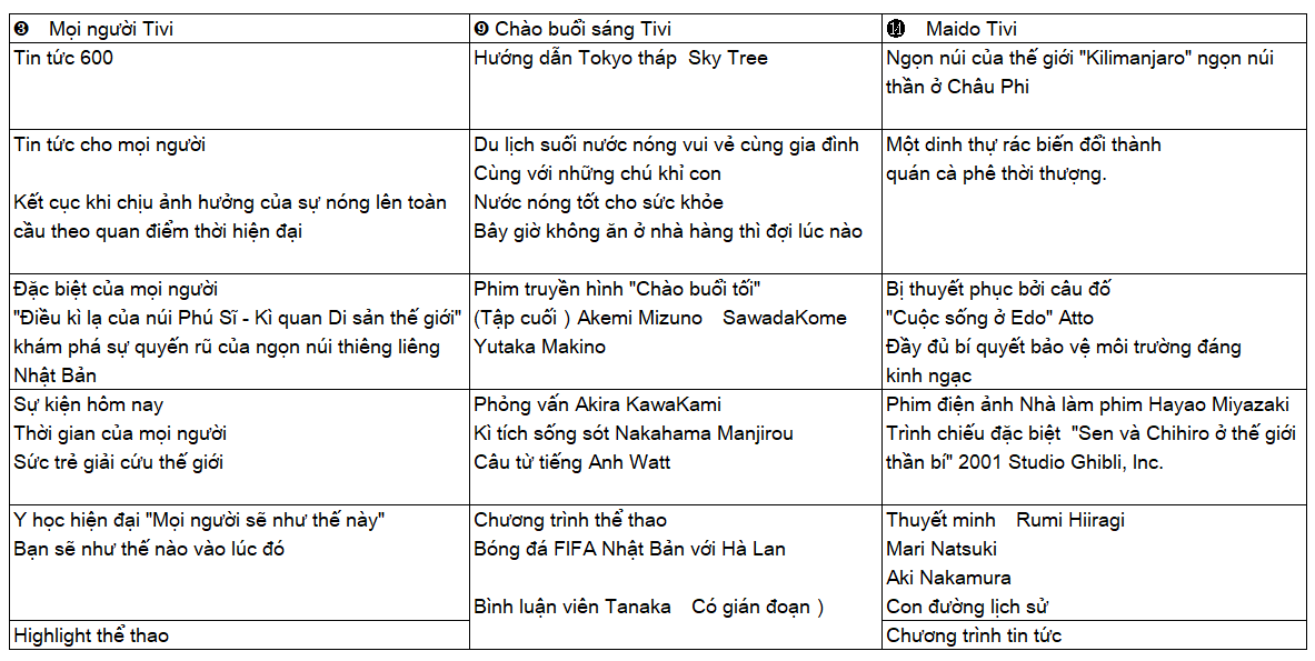 日本で 初めて テレビ放送を した 日は 1953年2月1日です。 その とき 東京に あった テレビは 1,200∼1,500台でした。 サラリーマンの 1か月の 給料 は 1万5,000円ぐらいでしたが、テレビは 20万円ぐらいでした。 ですから、たくさんの 人が 駅の前や デパートや 公園に ある テレビを 見ました。 テレビを 始めて みた 人は びっくりして、「この ラジオは 見ることが できる。」と 言いました。 テレビの 中に 人が いると思った 人も たくさん いました。 放送は 1日に 4時間だけでした。 1959年4月に 皇太子の 結婚式が ありました。 結婚式を 見たい 人は テレビを 買いました。 日本の テレビは 4月に 200万台に なりました。 1964年10月に アジアで 初めての オリンピックが 東京で ありました。 たくさんの 人が カラーテレビを 買いました。 今は 一人で パソコンや ケータイで テレビ番組を 見たり、お風呂で テレビを 見たりする ことが できます。 見たい 番組を 見たい 時間に 見ることもできます。 これから テレビは どう なると 思います。Trả lời câu hỏi