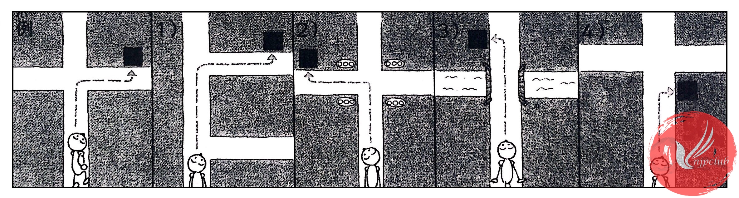 2) 道が わかりません(ケータイで 調べます) ⇒