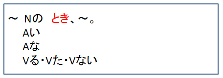 Nhấn mạnh về thời điểm xảy ra sự việc, thực hiện hành động. Đặc biệt đối với động từ : Khi dùng とき chúng ta sẽ xét thứ tự hành động để chia V1 ở thể thích hợp.