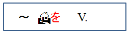 | ☞ | ~を:phạm vi không gian mà người hay vật đi qua. |