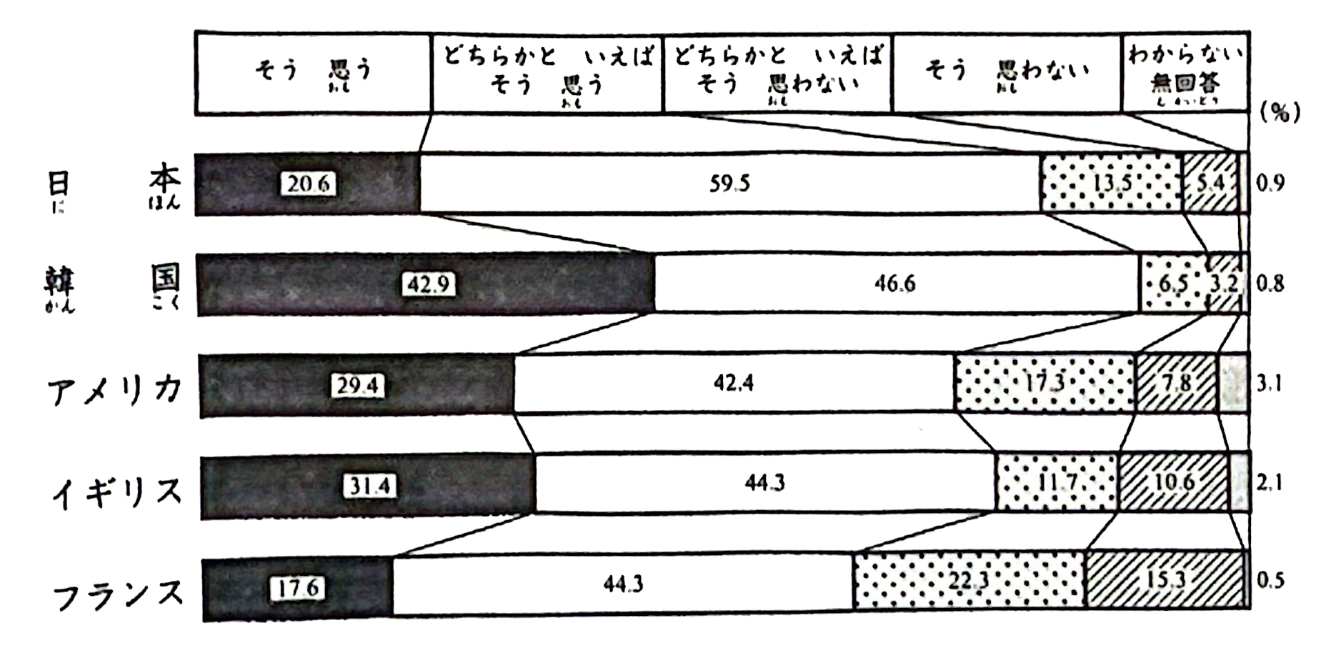 日本、韓国、アメリカ、イギリス、フランスの 若い 人(18歳~24歳)に聞きました。
