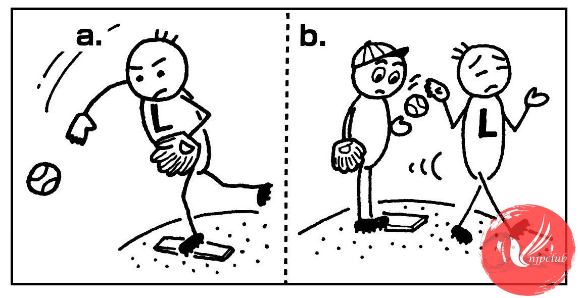 リン君、今のは だめだ。 Bạn Lynn lần này không được. 強いボールを 投げろ! Hãy ném banh thật mạnh vào !. |