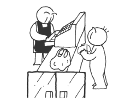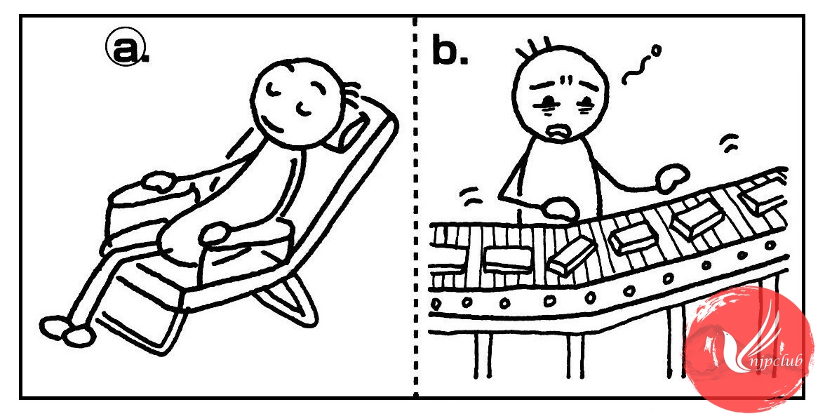 | 1)きょろきょろする | b. 仕事が遅い | |