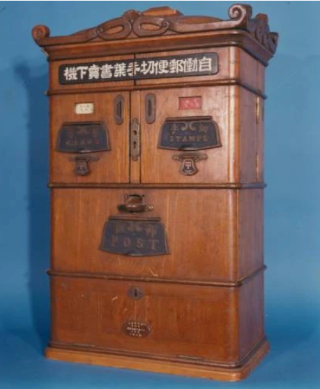 Máy bán hàng cổ nhất bây giờ là máy bán tem và bưu thiếp.
