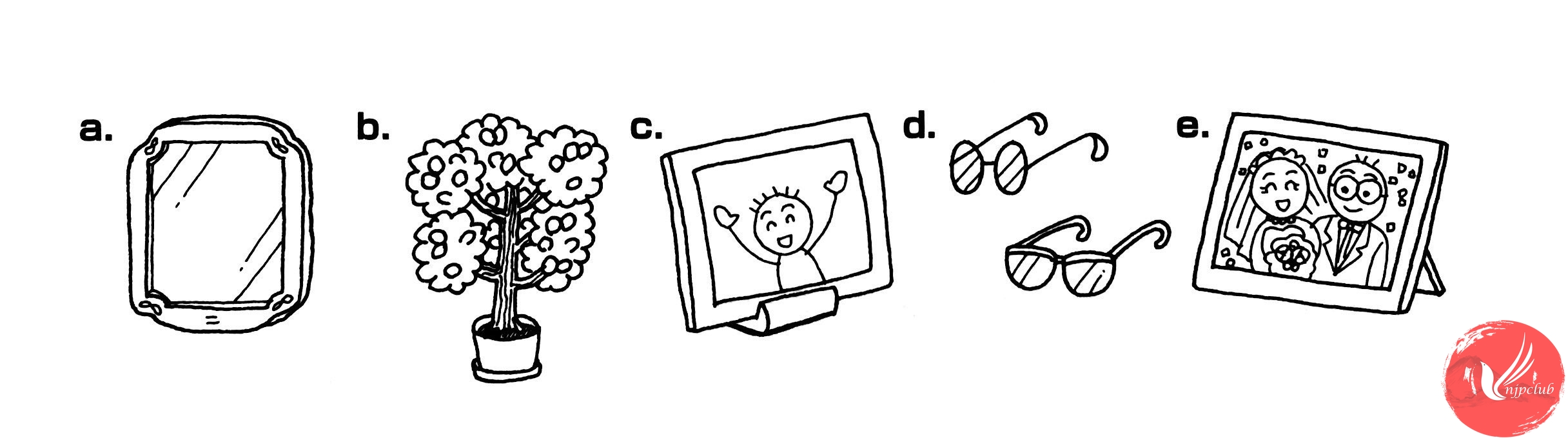 眼鏡が たくさん ありますね。 Có nhiều mắt kính nhỉ. 玄関にも テレビの 前にも。 Ở hành lang cũng có, ở trước ti vi cũng có. |
