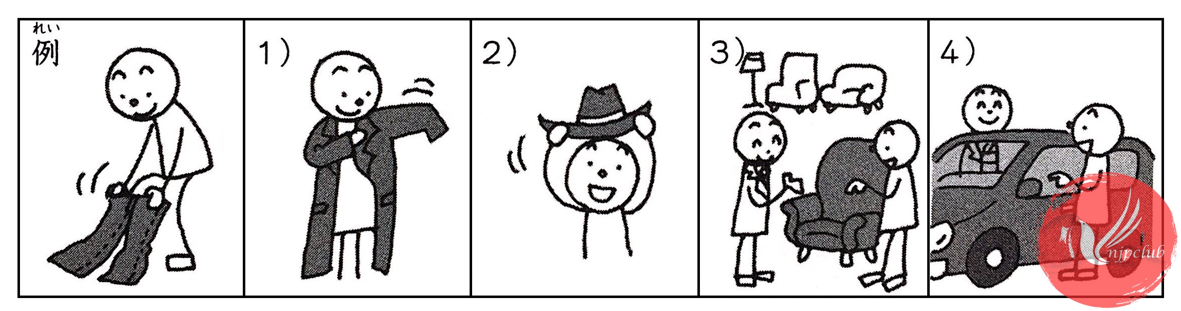 例: 非常口は どこに ありますか・確かめて おきます